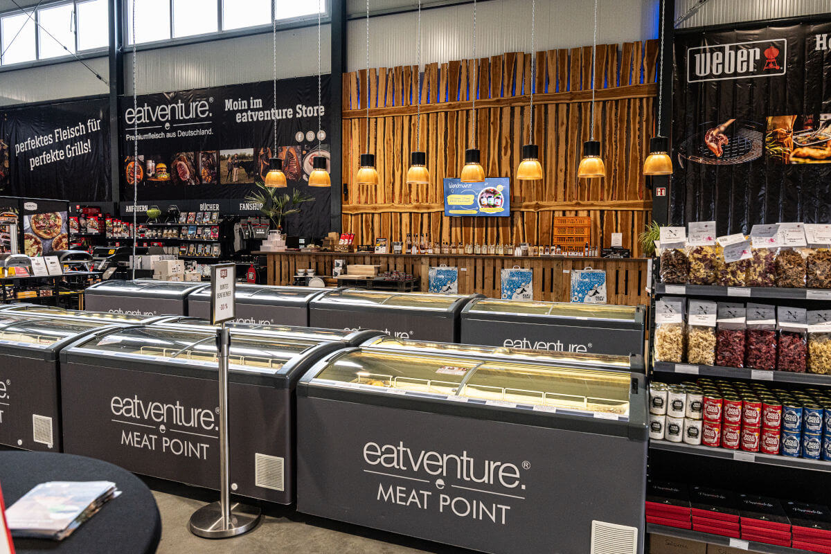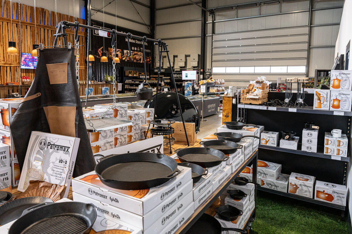 Unser 450qm großer Werksverkauf mit großer Auswahl an Fleisch, Feinkost und WEBER Store: